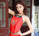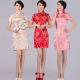 热卖梅花红色酒店迎宾活动剪彩礼仪短旗袍复古斜襟短袖新娘礼服装