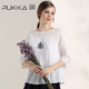 Pukka/蒲牌春秋装新款原创大码女装刺绣亚麻衬衫七分袖衬衣