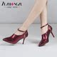 深口单鞋女真皮尖头高跟鞋细跟春季女鞋磨砂羊皮及裸靴及踝靴裸靴