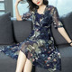 V领名媛雪纺碎花连衣裙2017夏季新款女装中袖印花显瘦中长裙子女