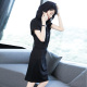 雪纺连衣裙子女春夏季2017新款女装中长款收腰显瘦中袖黑色连衣裙