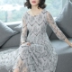 蕾丝连衣裙春秋款2017新款女装春装韩版中长款浅灰夏季碎花a字裙
