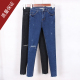 firefly正品膝盖割破洞磨破小脚裤毛边无锁边高腰牛仔裤抓纹长裤