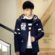 棉衣男青年学生冬季加厚外套中长款印花连帽修身简约潮流男士棉服