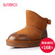 步伊鸟 雪地靴 女 冬季二层牛皮平底短靴 加厚保暖雪地棉鞋字