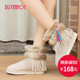 步伊鸟 女雪地靴子 中筒克罗心保暖防滑雪地棉平底女鞋靴子