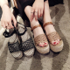 原宿凉鞋女潮ulzzang韩 复古镂空厚底松糕草编罗马鞋