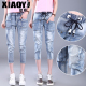 破洞牛仔裤女春夏季2017新款大码胖MM松紧腰哈伦七分裤女小脚垮裤