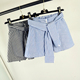 韩国2017新款韩版系带假两件松紧腰条纹短裙裙裤半身裙短款女潮夏