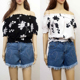韩国东大门2017夏装新款复古百搭绣花一字领露肩收腰短款雪纺上衣