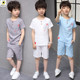 童装男童夏装棉麻套装2017新款中大童儿童短袖夏季亚麻两件套11岁