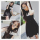 黑白拼色蕾丝拼接蝴蝶结娃娃领高腰显瘦赫本小黑裙甜美连衣裙夏