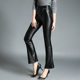 橙唯复古高腰喇叭裤女长裤裤子春秋韩版修身显瘦PU微喇裤皮裤