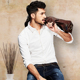 iFashion男士长袖衬衫白色男时尚简约修身男装白衬衣单色净版上衣
