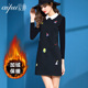 爱朴2016秋冬新款欧美大码女装加绒加厚娃娃领针织拼接打底连衣裙