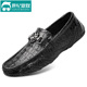 鳄鱼纹真皮男士豆豆鞋 白色夏季潮男一脚蹬男鞋 黑色透气休闲皮鞋