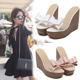 波西米亚风蝴蝶结防滑防水鱼嘴鞋女超高跟凉拖性感坡跟拖鞋女厚底