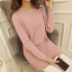 秋冬季新款毛衣女套头韩版百搭中长款修身加厚圆领开叉打底针织衫