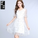 2017夏季新款网纱刺绣连衣裙女夏天蕾丝收腰修身显瘦大码胖mm夏装