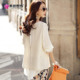 春装新款大码女装韩版气质打底裙七分袖中长款镂空蕾丝连衣裙