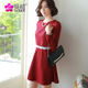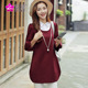 紫檀新款秋装韩版大码女装短裙修身拼接显瘦长袖假两件连衣裙