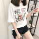 夏季新款2017韩版学生上衣圆领短袖T恤女宽松大码字印花百搭体恤