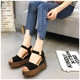 复古松糕底厚底坡跟罗马凉鞋女夏鱼嘴高跟鞋女2017新款 韩版 百搭