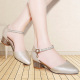 东帝名坊2017夏季新款包头中跟凉鞋一字带扣粗跟甜美女鞋漆皮单鞋