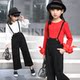 2017新款春装女童套装韩版中大童阔腿裤夏季儿童背带裤衬衣两件套