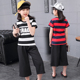 女童阔腿裤套装中大童2017夏季新款韩版儿童条纹短袖两件套宽松潮