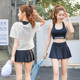 韩国瑜伽服套装春夏短袖罩衫防震文胸跑步运动短裙健身服女三件套