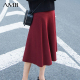 Amii秋冬新品针织半身裙女中长款A字裙松紧腰棉质百褶裙修身气质
