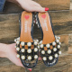 2017新款凉拖鞋女夏韩版粗跟女士时尚外穿中跟珍珠铆钉一字拖凉鞋