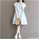 2016夏季新款韩版海魂衫条纹大码宽松短袖POLO领A字裙连衣裙女