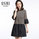 细条纹连衣裙喇叭袖圆领韩版休闲百搭中长款欧诗曼锦2017春季新款