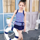 麦斯格新款儿童泳衣 分体条纹三件套裙式女孩儿童度假防晒游泳衣