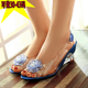 潮韩版拼色花朵透明水晶跟学生坡跟鱼嘴凉鞋大码女鞋夏中跟41-43