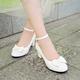 春夏韩版甜美蝴蝶结粗跟中跟绑带单鞋女圆头白色伴娘婚鞋大码女鞋