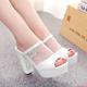 夏性感网纱外穿女式时尚凉拖鞋厚底鱼嘴高跟鞋粗跟大码女鞋41-43