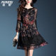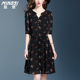 茗思雪纺印花连衣裙春秋新款时尚气质淑女七分袖立领修身A字裙女
