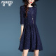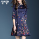 茗思2017春秋女新款印花A字裙圆领七分袖中长款收腰修身连衣裙