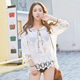 2017新款韩版圆领拼接花边镂空百搭纯色显瘦罩衫