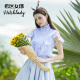 希区女郎 夏季度假高端蓝色优雅条纹短袖衬衣女露肩上衣高领 LDJ4