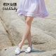 希区女郎 夏季新款高端尖头绒面绑带一字扣平底鞋女 草绿色 LDH12
