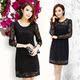大码女装春装新款2017胖妹妹长袖蕾丝打底衫中长款胖mm显瘦连衣裙
