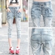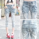 破洞牛仔裤女大码七分裤宽松哈伦裤显瘦小脚裤八分马裤韩版乞丐裤
