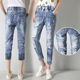 夏新大码宽松破洞牛仔裤女七分裤哈伦裤修身显瘦马裤小脚7分裤女