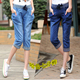 夏季女七分裤牛仔女短裤大码松紧腰7分裤小脚裤 宽松学生 显瘦潮
