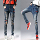 2016秋冬新款牛仔裤女小脚铅笔裤紧身显瘦大码贴布弹力长裤韩版潮
