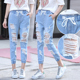 2017夏季新款破洞牛仔裤女九分裤韩版潮bf宽松乞丐显瘦小脚哈伦裤